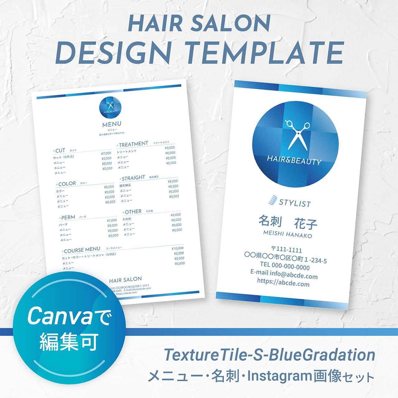 施術メニュー・名刺・Instagram投稿画像をまとめて作れる【美容室向けCanvaテンプレート】です。