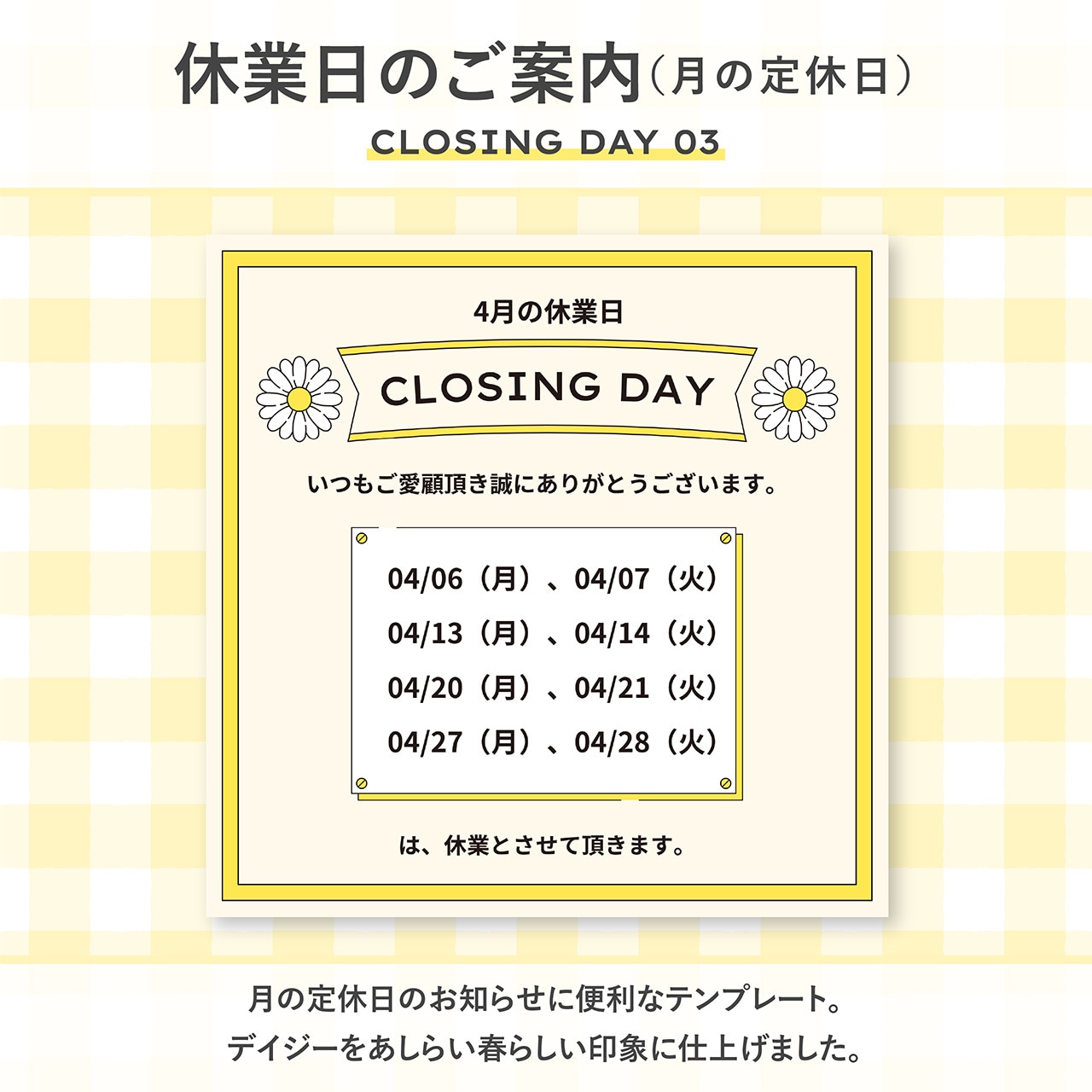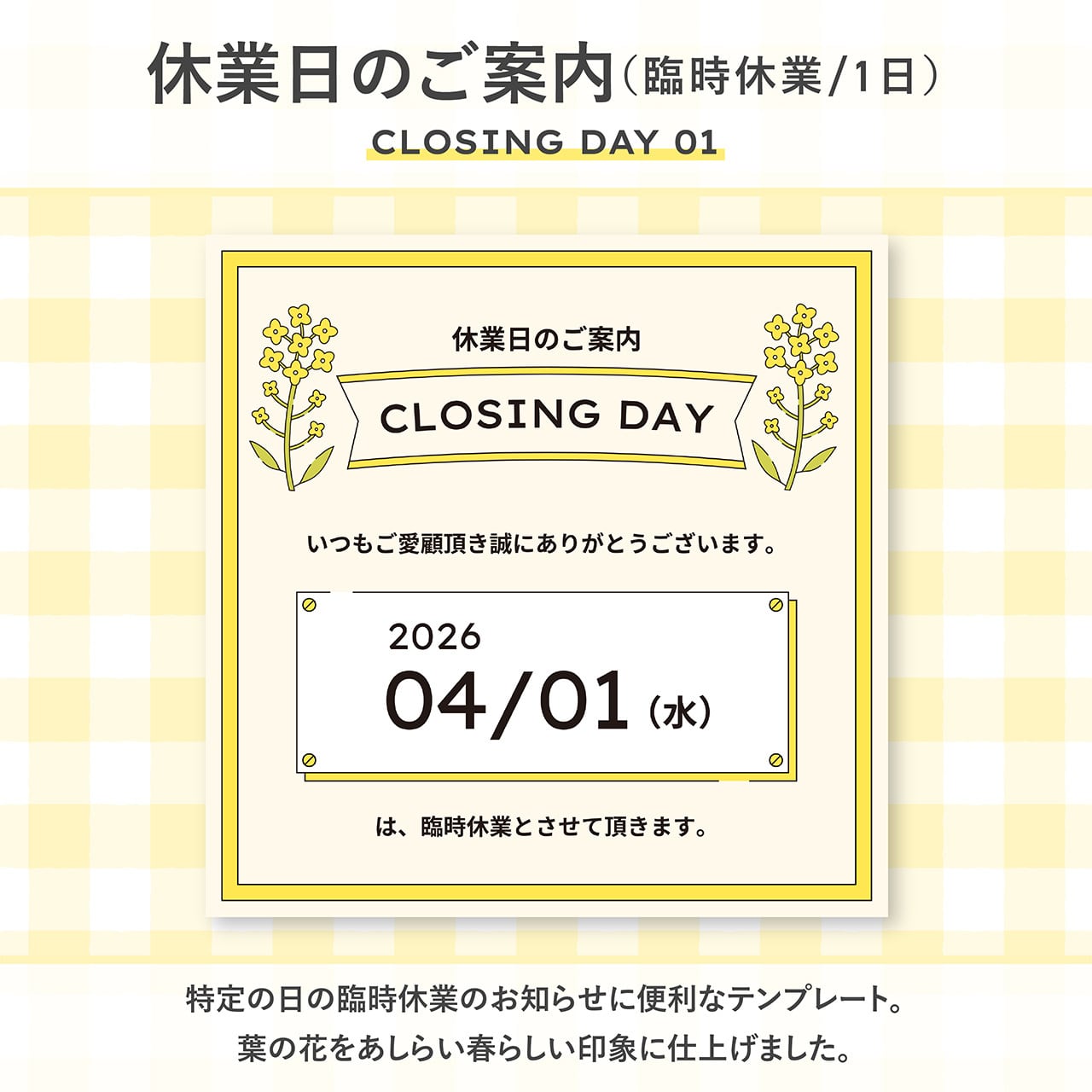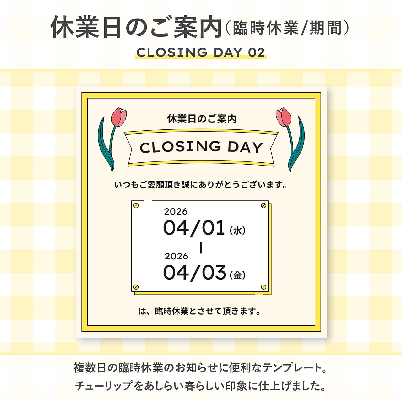 春の臨時休業や定休日のお知らせ、